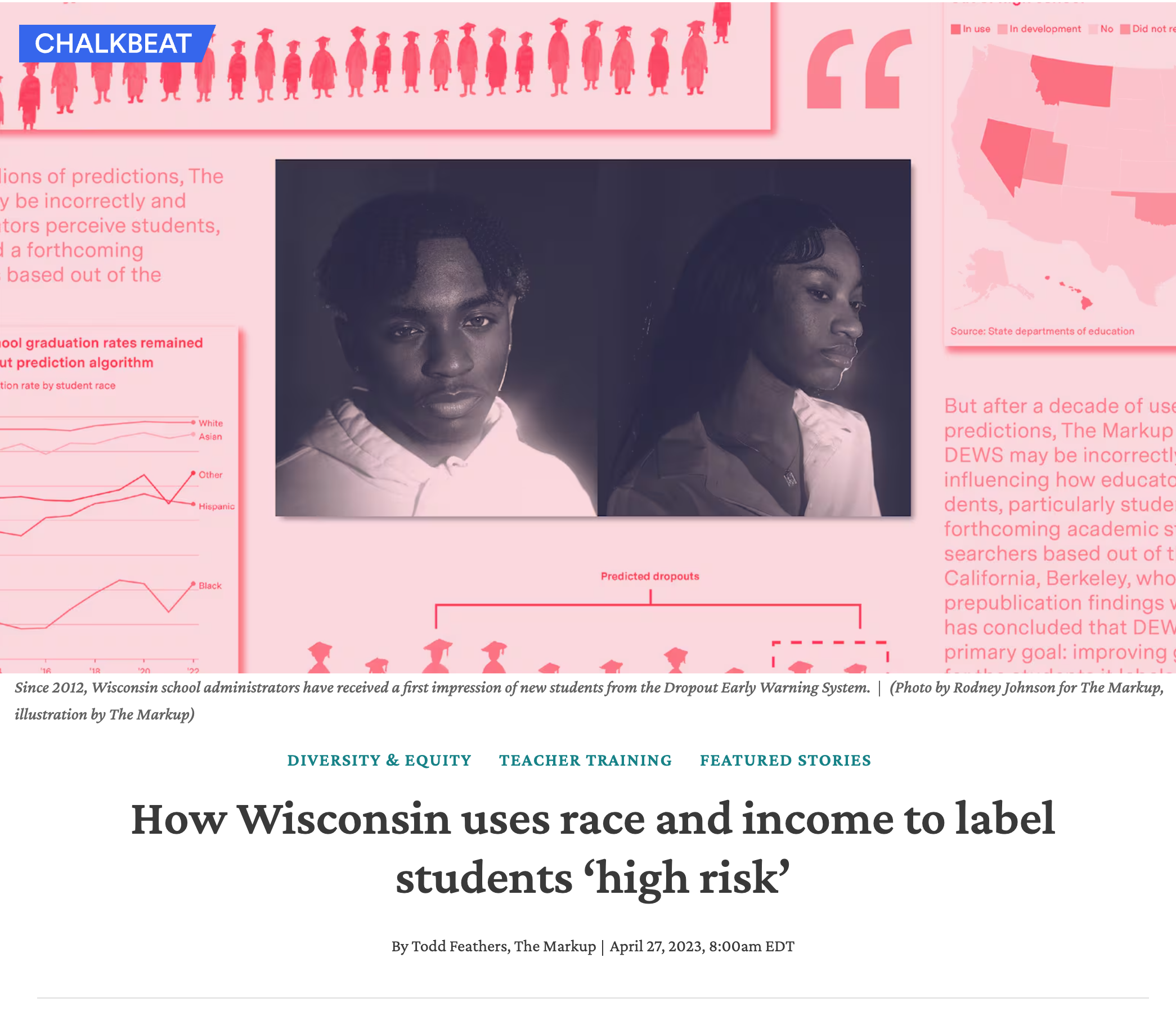 But after a decade of use and millions of predictions, The Markup has found that DEWS may be incorrectly and negatively influencing how educators perceive students, particularly students of color.