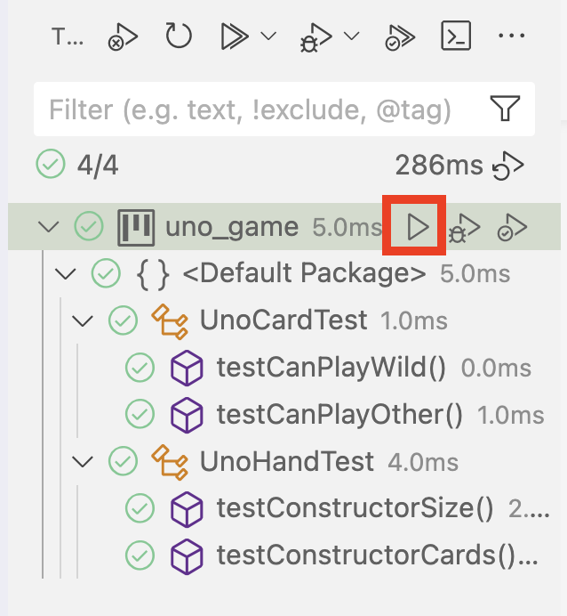 src/main/javaand the tests are insrc/test/java. - Navigate to the testing tab, where you should see something like this: