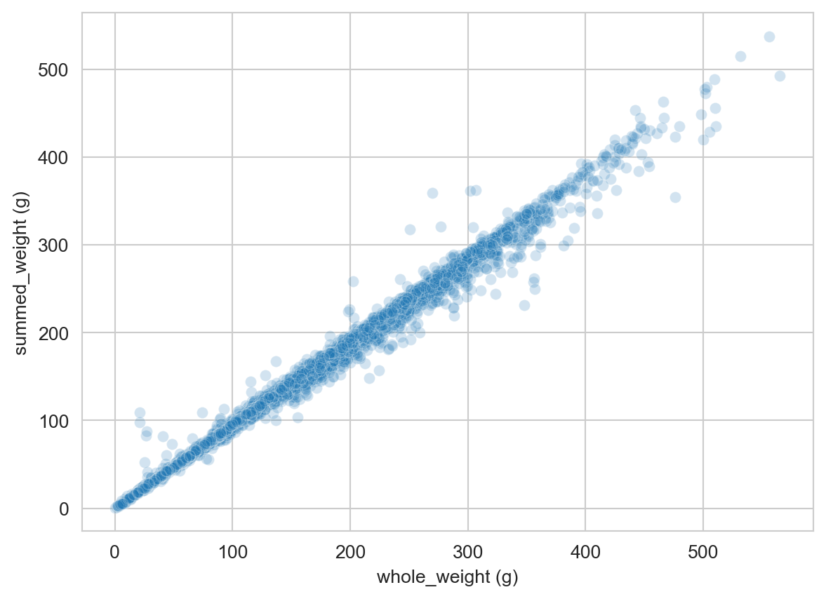 df["summed_weight (g)"] = df["shucked_weight (g)"] + df["viscera_weight (g)"] + df["shell_weight (g)"]
